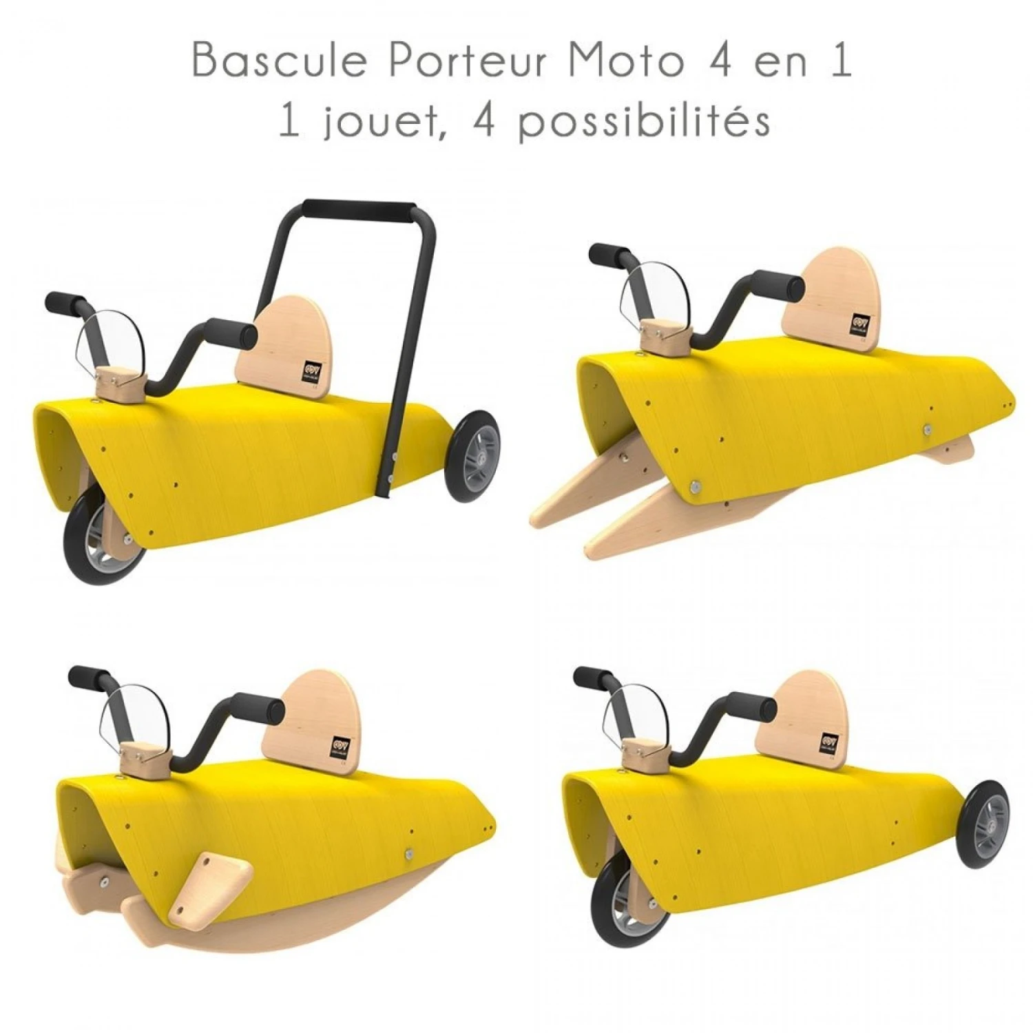 Bascule Porteur Moto en bois jaune 4 en 1 de Chou Du Volant