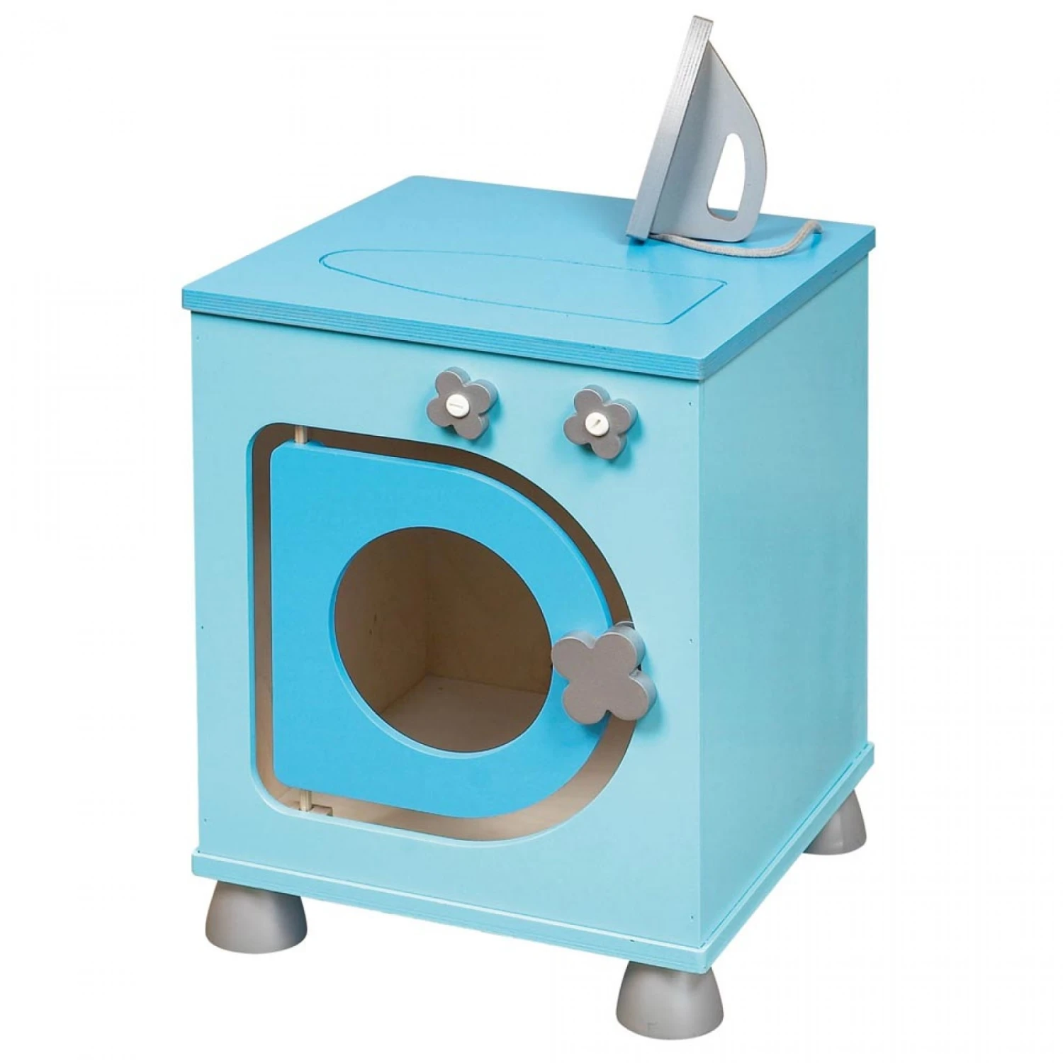 Le Bloc Lingerie Bonbon est composé d’un lave-linge, d’une table à repasser et de son fer en bois.