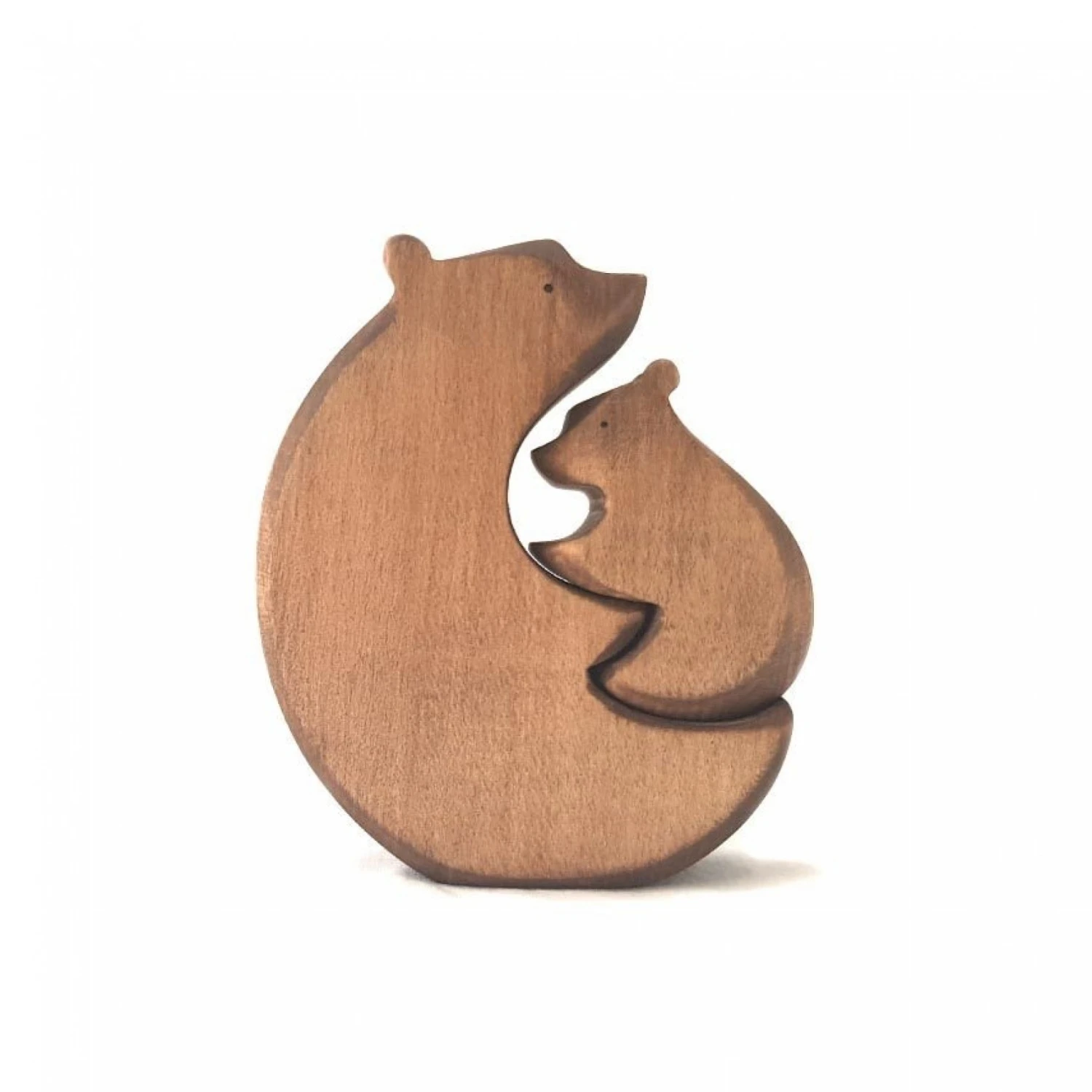 Une figurine en bois représentant une maman ourse et son bébé ourson peinte à la main avec des peintures végétales et minérales à Saverne en Alsace. Toutes les figurines sont ainsi variées… Cette figurine de la marque Brin d’Ours est spécialement conçue pour s’amuser et imaginer son univers autour du monde de la forêt.