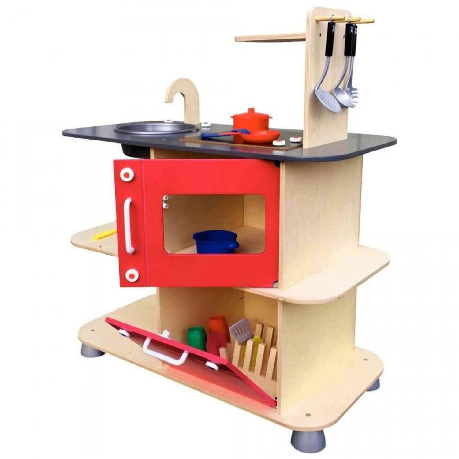 Un îlot central conçu pour faciliter l’accès au jeu. Cette cuisinière en bois est particulièrement adaptée aux tout-petits, dès l’âge de 10 mois.