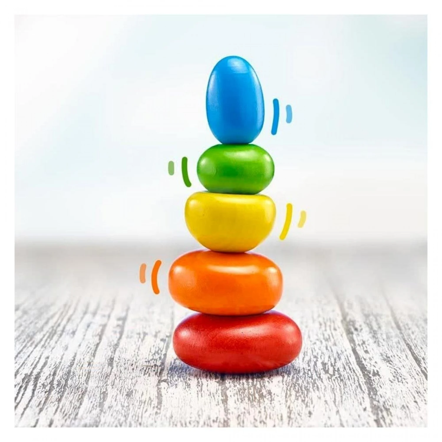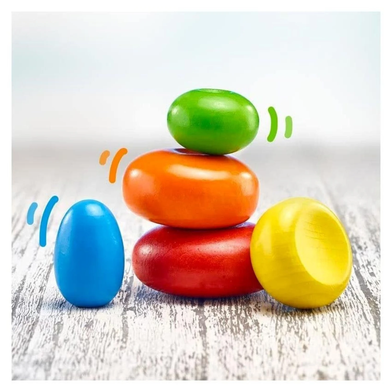 5 galets en bois à empiler tout en maintenant l’équilibre. Attention, l’ensemble vacille….et tombe… Ces petites pierres rondes et agréables au toucher aideront votre enfant à entraîner son adresse, sa psychomotricité et sa patience. Ce jeu en bois recommandé pour les enfants dès 12 mois convient également aux adultes.