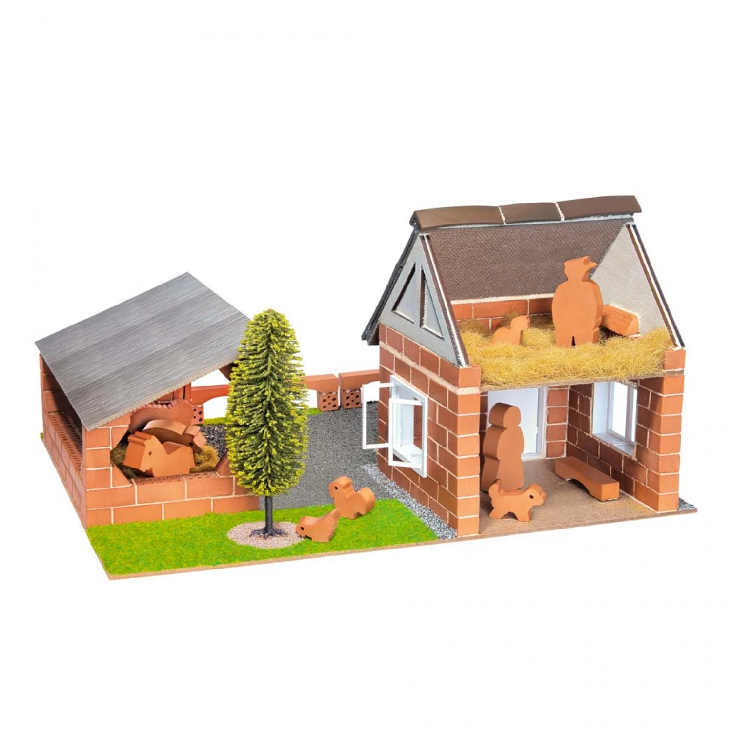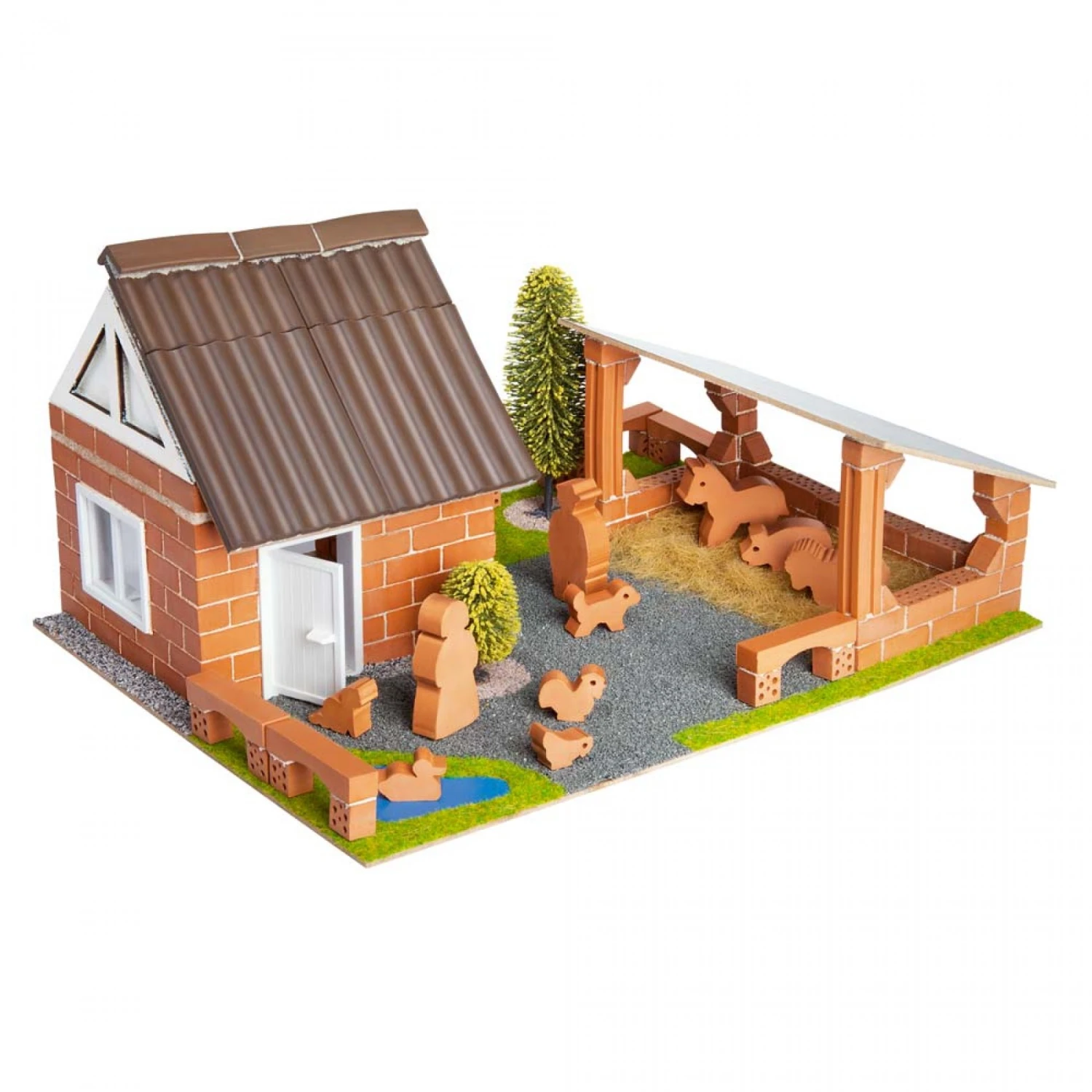 Une grande ferme à construire soi même. Un jeu de construction permettant de maîtriser l’art de la maçonnerie en assemblant les petites briques d’argile avec du ciment. Cet assemblage est très stable et l’effet est vraiment très proche de la réalité. Une fois la construction réalisée, les briques sont réutilisables après immersion dans de l’eau, permettant ainsi de réaliser une autre construction.