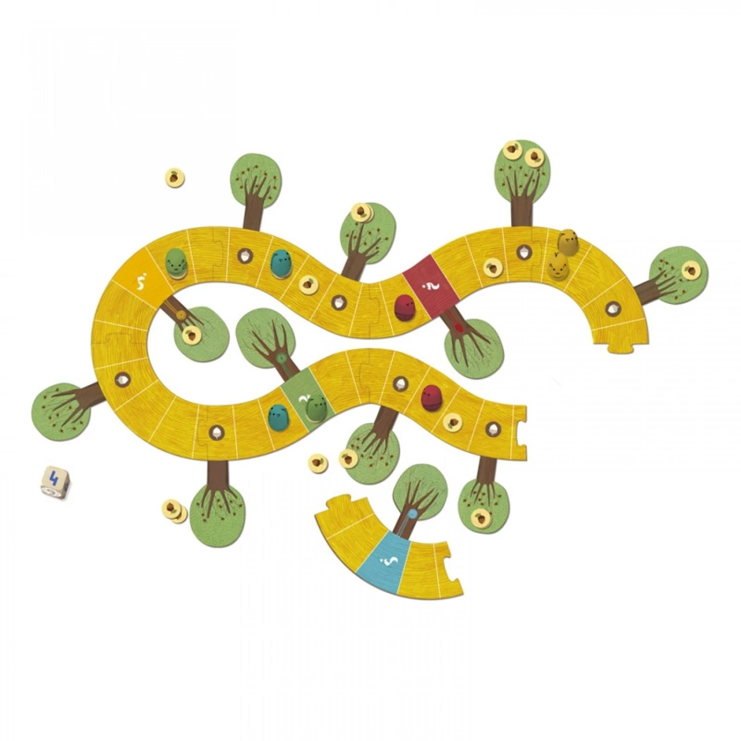 *8 pions d’écureuils : 2 jaunes, 2 rouges, 2 bleus, 2 verts