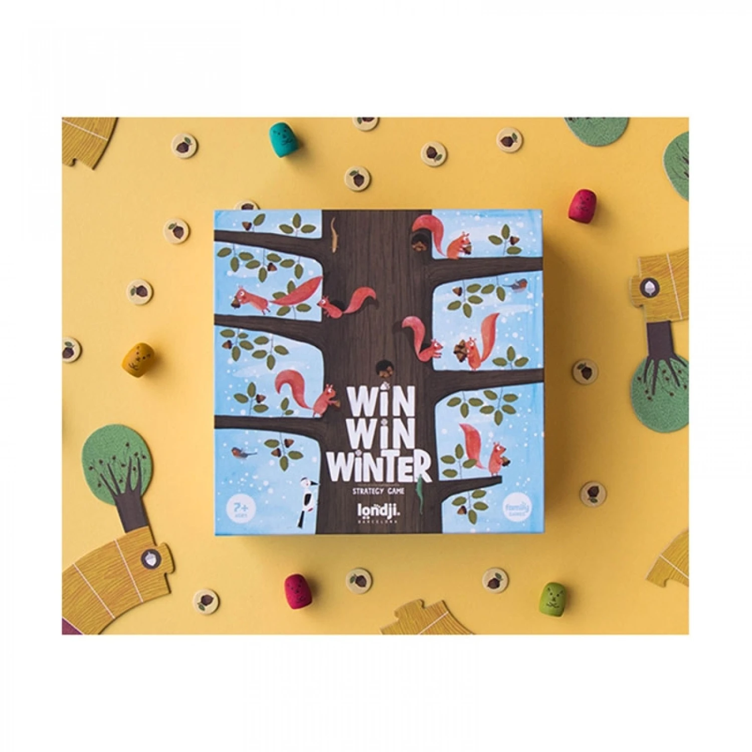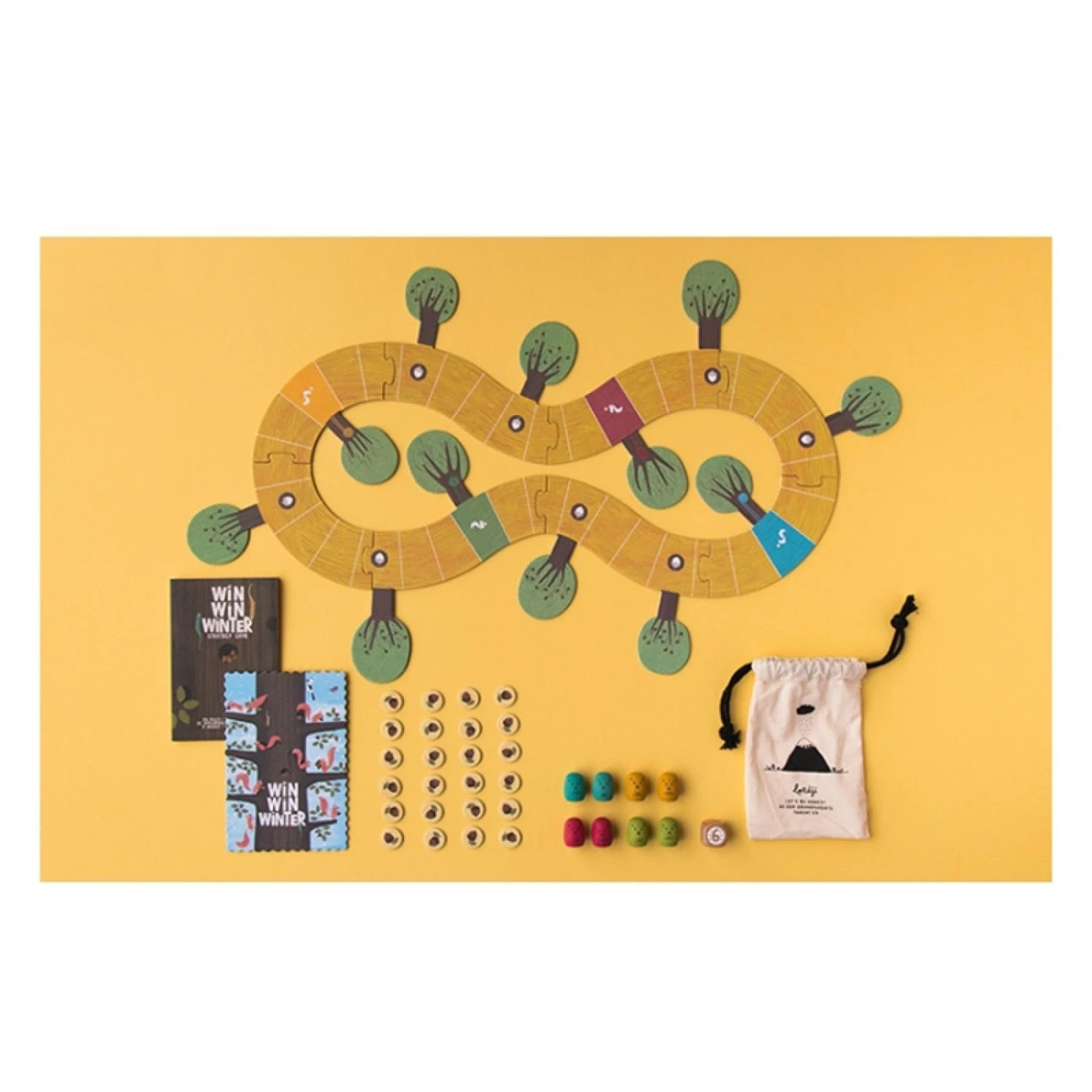 Le jeu se termine lorsqu’il n’y a plus de glands dans les arbres. L’hiver est arrivé et il faut compter les glands. La famille d’écureuils qui a amassée le plus de glands est déclarée gagnante.