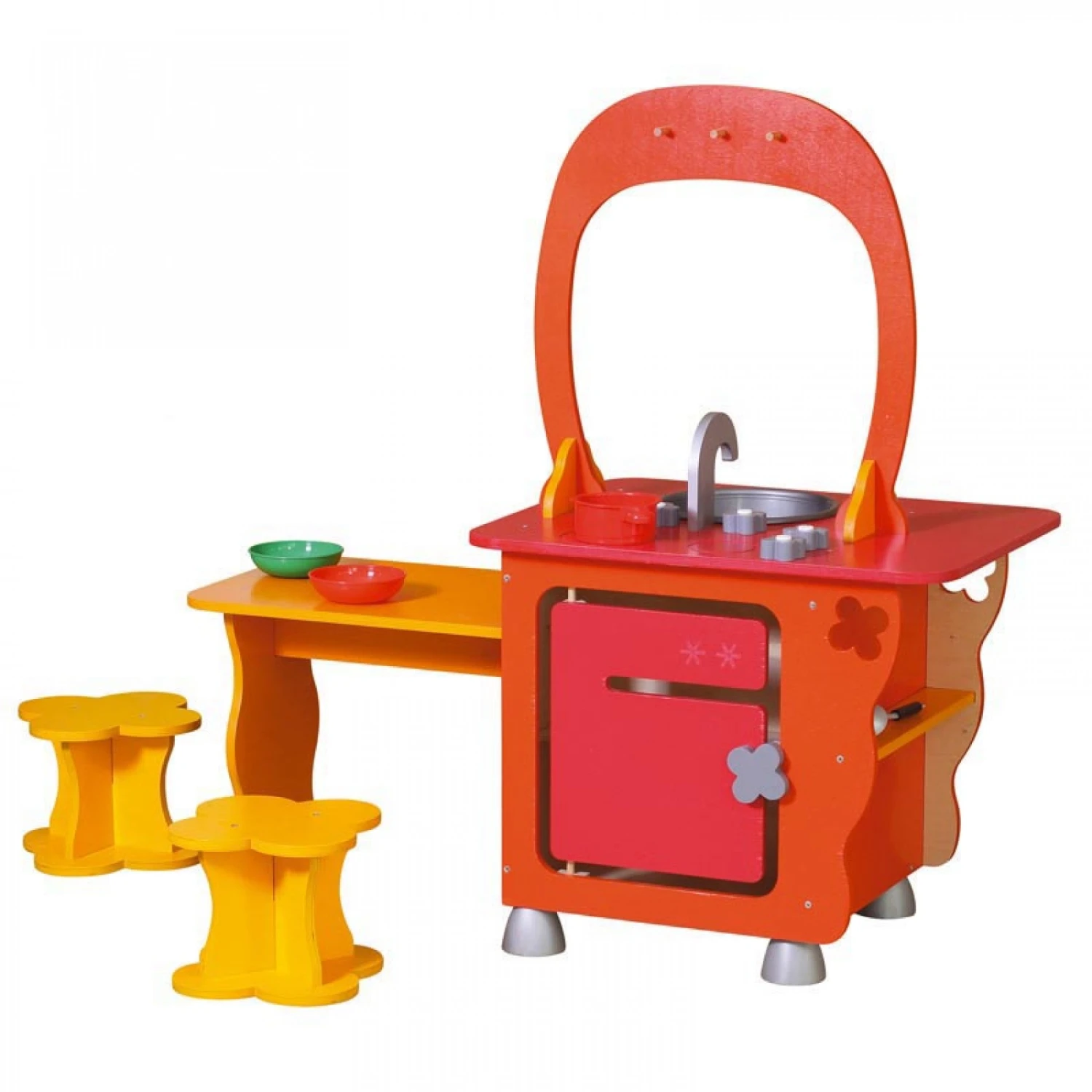 Le Meuble Kitchenette Bonbon est idéal pour jouer à s’occuper de la cuisine et des repas. Il est composé de plaques de cuisson, d’un four, d’un évier, d’un frigo, de rangement, d’une table et de deux tabourets.