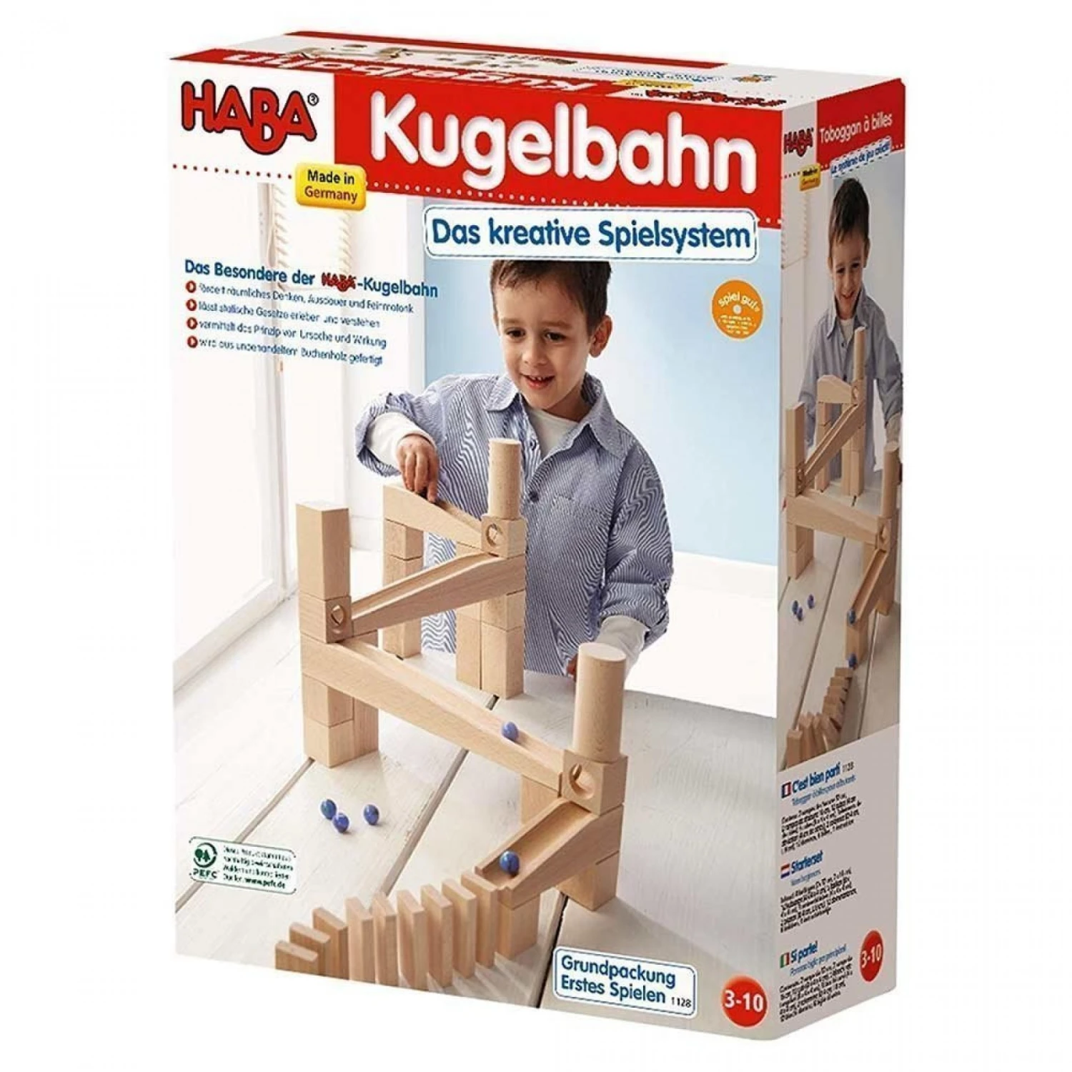 Une grande boite de base compatible avec les autres systèmes Haba comme le toboggan à billes xylophone et le grand toboggan à billes.