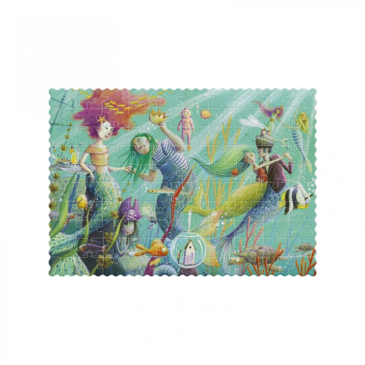 Ce puzzle cartonné Londji « My Mermaid » nous invite à découvrir le fond des mers ! en compagnie des sirènes. Nagez dans ce mileu sous-marin fantastique avec ces sirènes merveilleuses et ces petits poissons colorés. Le dessin contient de nombreux détails qui émerveilleront vos enfants, l’illustration est de de Sonja Wimmer. Un puzzle pour les enfants à partir de 6 ans.