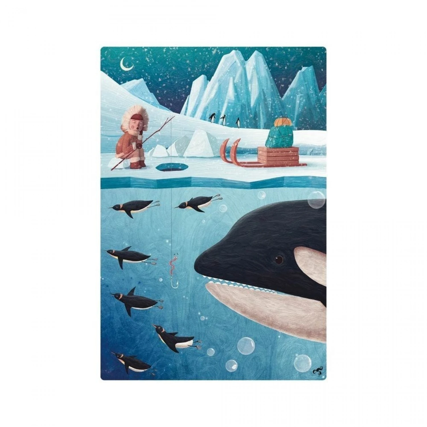 Le monde de glace est un beau puzzle trés coloré de 108 pièces de Ludattica représentant les fonds marins glacés. Les pièces du puzzle sont rangées dans une belle boîte originale. Dés 5 ans.