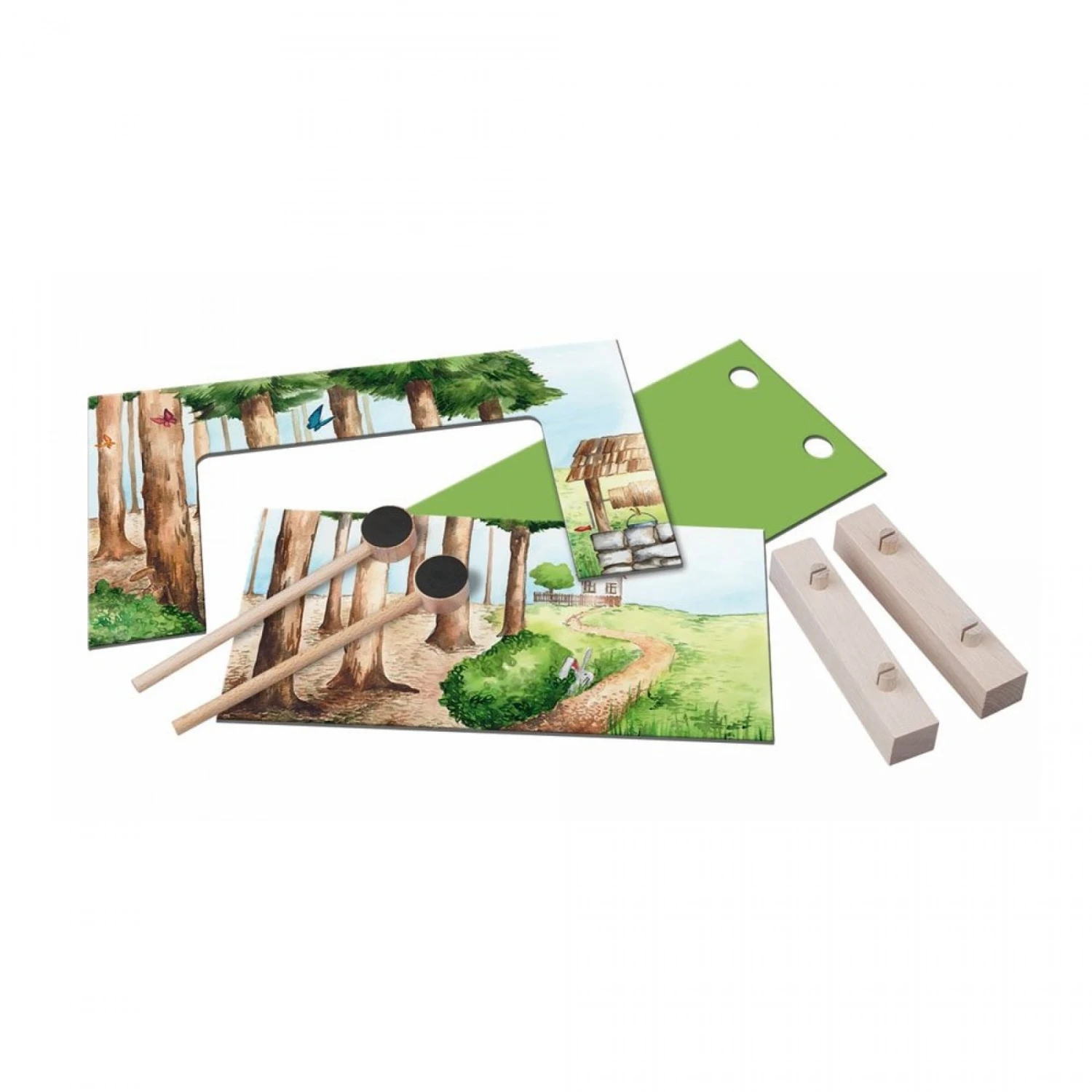 Un théatre de marionnettes pour raconter de belles histoires et s’amuser à actionner les marionnettes en bois grâce aux deux tiges aimantées.