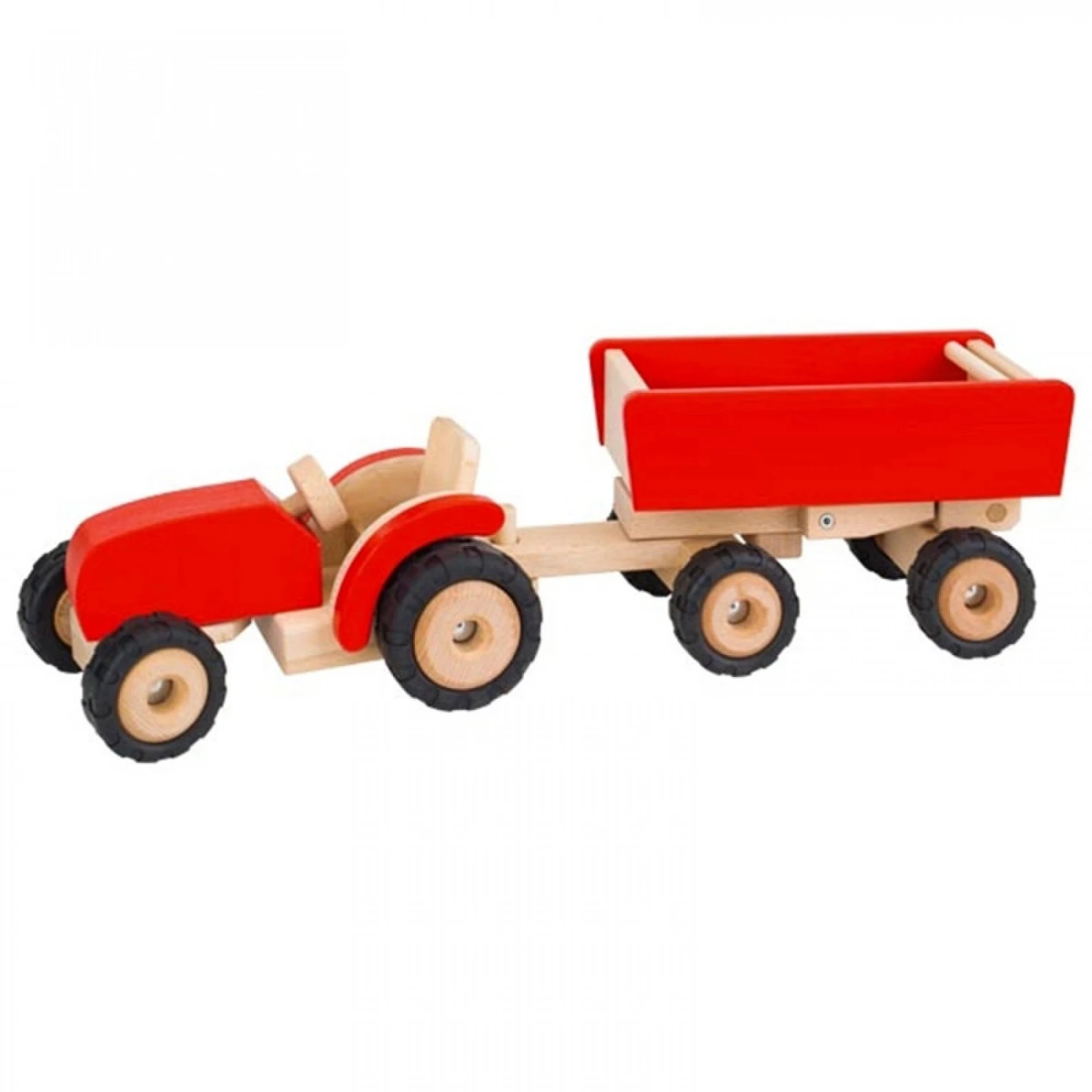 Un tracteur en bois de qualité, très réaliste avec ses roues en caoutchouc. Ce tracteur existe également en vert.