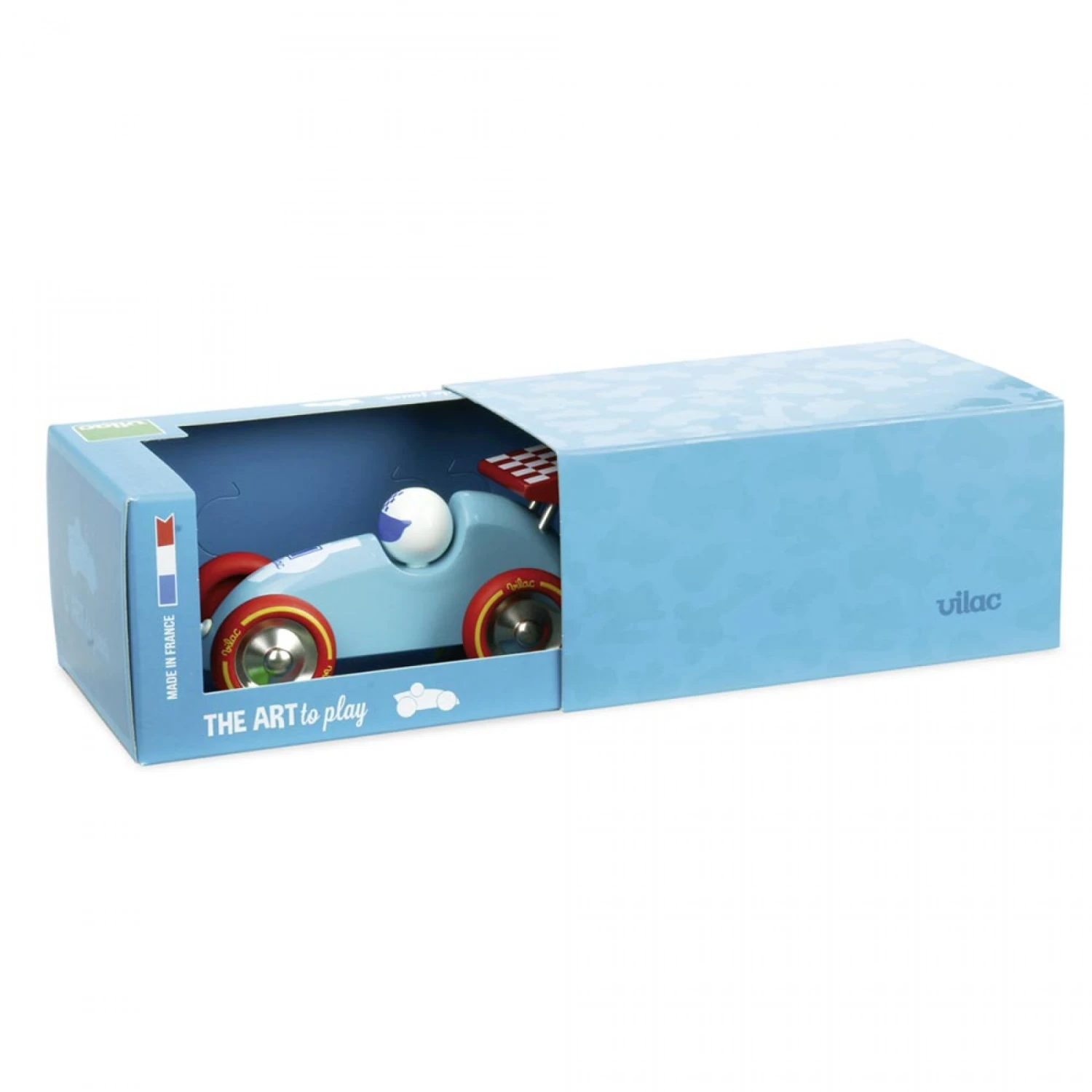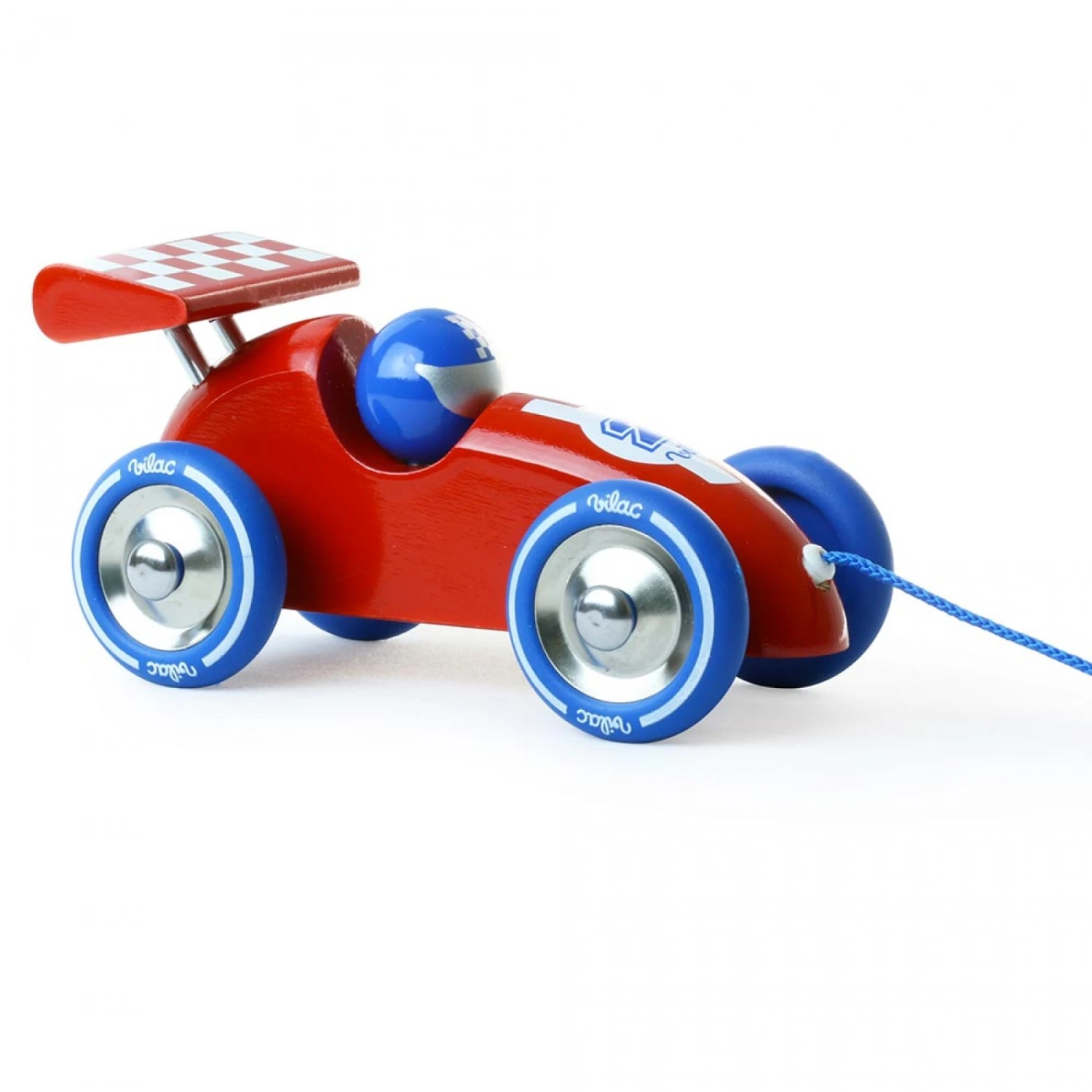 Une voiture de course en bois pour les amateurs de vitesse…Un véhicule à traîner équipé de roues en plastique qui roule sans faire de bruit.