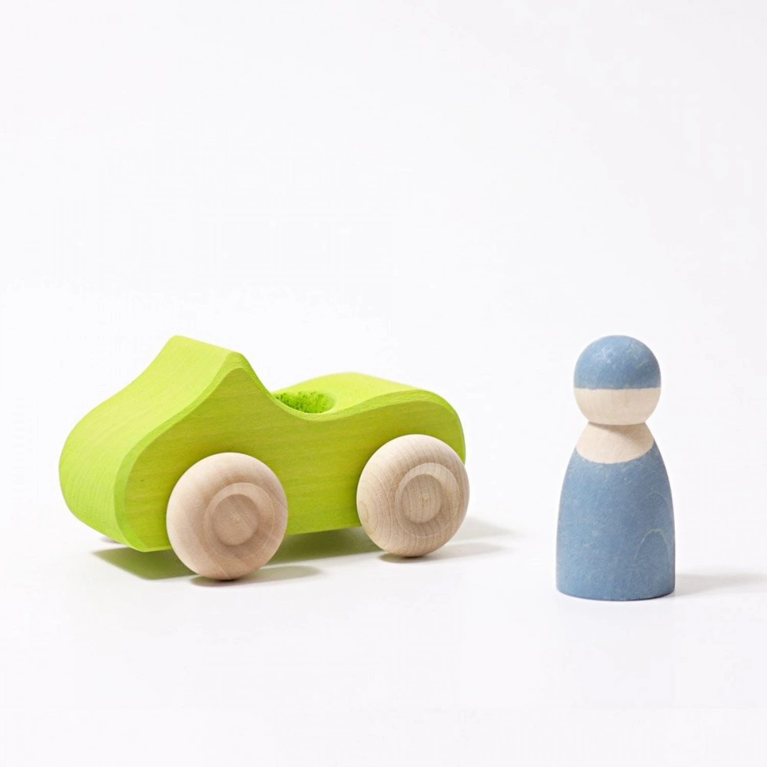 Une voiture en bois avec son petit personnage, prête pour rouler pendant des heures. Découvrez les véhicules Grimm’s fabriqués en bois massif (tilleul) et leurs courbes harmonieuses. Une voiture à associer avec les éléments de la gamme WOBBEL et Grimm’s notamment.